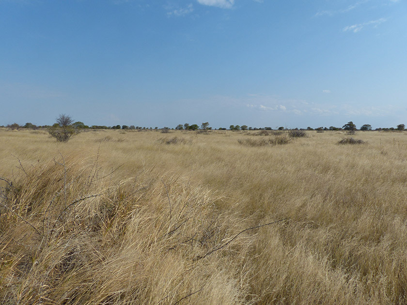 Silver Terminalia sand veldt, Kalahari sand acacias, Kalahari apple leaf dominate the landscape, interspersed with grasslands and dotted with occasional dunes, pans and shallow fossil river valleys.
